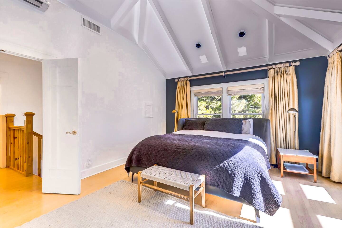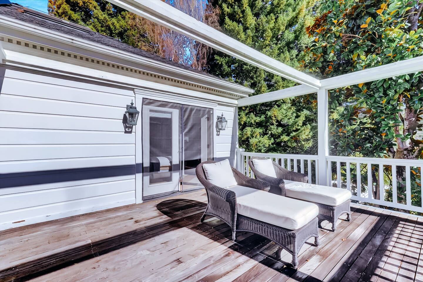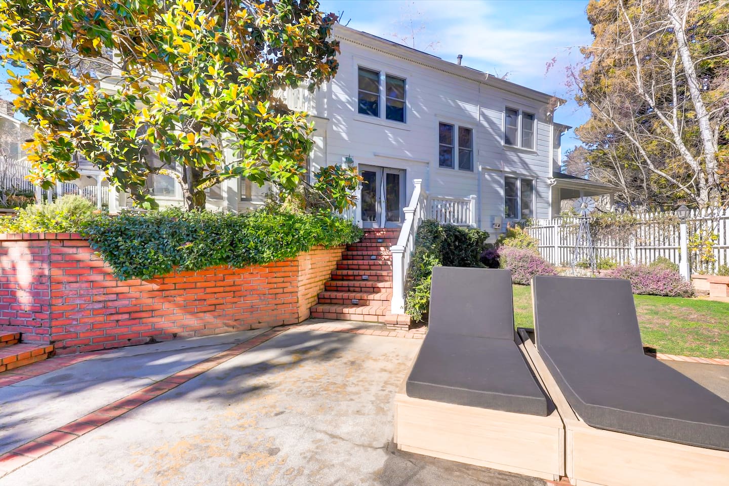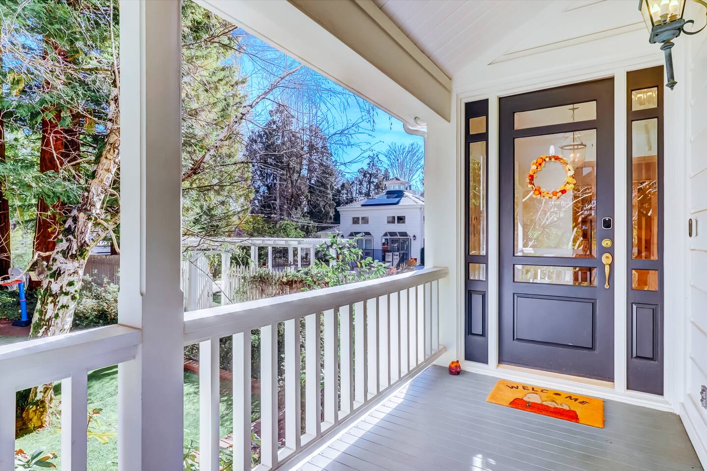 Discover your spacious 2,600 sq ft Victorian retreat, lovingly remodeled and nestled in the heart of Nevada City off Broad street! Built in the 1800s, this home offers historic charm with modern comfort, creating a memorable getaway. Wake up with a cup of coffee on the wraparound porch. Spend your afternoons lounging by the pool or strolling downtown — just a 5-minute walk away. Ideal for families or retreats, spacious and accommodating for all. This Victorian home offers a unique blend of comfort, luxury, and convenience, making it the perfect base for your Nevada City adventure. Pet-friendly, with conditions: Well-behaved dogs are welcome. Please inquire about your furry friends before booking. Amenities: •Pool/Hot tub •Black out shades in all bedrooms. •Electric Fireplace •Peloton Bike/Workout equipment •BBQ •Outdoor kids play equipment •Smart TVs •Private Upstairs Patio •Spacious, private yard •Kids room/toys/pack and play, optional baby gate and basic children's utensils •Walkable to historic downtown shops & restaurants •Spacious front parking area with room for multiple cars, plus free street parking •Laundry room with washer and dryer, accessible through the back entry to garage. •High-speed internet. •Mini-split heating and air conditioning throughout the home, with individual room controls. •Tesla Charger •Solar and Backup Batteries Bedrooms: Master Suite: Indulge in the vaulted beam master bedroom, a true sanctuary featuring a private outdoor patio, a large-screen smart TV, and an opulent en-suite bathroom. The bathroom boasts floor-to-wall marble tiles, full-length mirrors, a large standing shower, and heated towel racks. For your wellness, enjoy a Peloton bike, a rebounding trampoline, Pilates mat/blocks, and a mini-fridge for chilled water. Guest Bedrooms: Two additional bedrooms offer comfortable accommodations. One bedroom features two queen beds and a smart TV. The other serves as a versatile office/bedroom with a sleeper day bed stacked double mattress sleeps twin. Or, remove the top to side-by-side on the floor for an oversized queen and linens stored in the cabinets. All bedrooms are equipped with blackout shades for a restful night’s sleep. Bathrooms: The home features 2.5 bathrooms, with the master en-suite being a luxurious highlight. Living Spaces: Downstairs Entertainment: The downstairs area is designed for entertaining, featuring a deluxe full kitchen with a large range, double oven, and ample cooking supplies. The spacious dining area flows seamlessly into a sunroom filled with toys for children. The living room is a cozy haven with an oversized modular leather sofa, a beanbag, a large smart TV, a fireplace, and a selection of books and reading materials. Kitchen: The gourmet kitchen is fully equipped with everything you need to prepare delicious meals, featuring modern appliances and plenty of counter space. Outdoor Spaces: A sprawling outdoor oasis awaits you—a rare find in downtown Nevada City. Relax by the private pool and hot tub, where a safety gate ensures child protection. Enjoy alfresco dining under the pergola, with a BBQ grill and spacious dining table. Two fenced yards provide safe play areas for dogs and children, while the front yard boasts robust play equipment. Majestic, mature redwoods create a serene, secluded atmosphere.