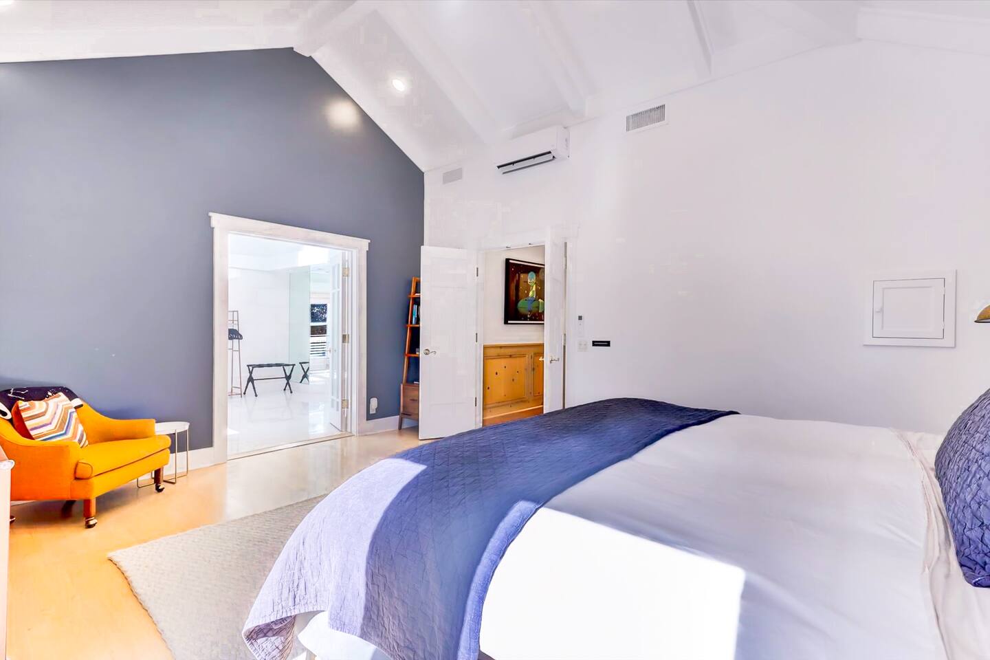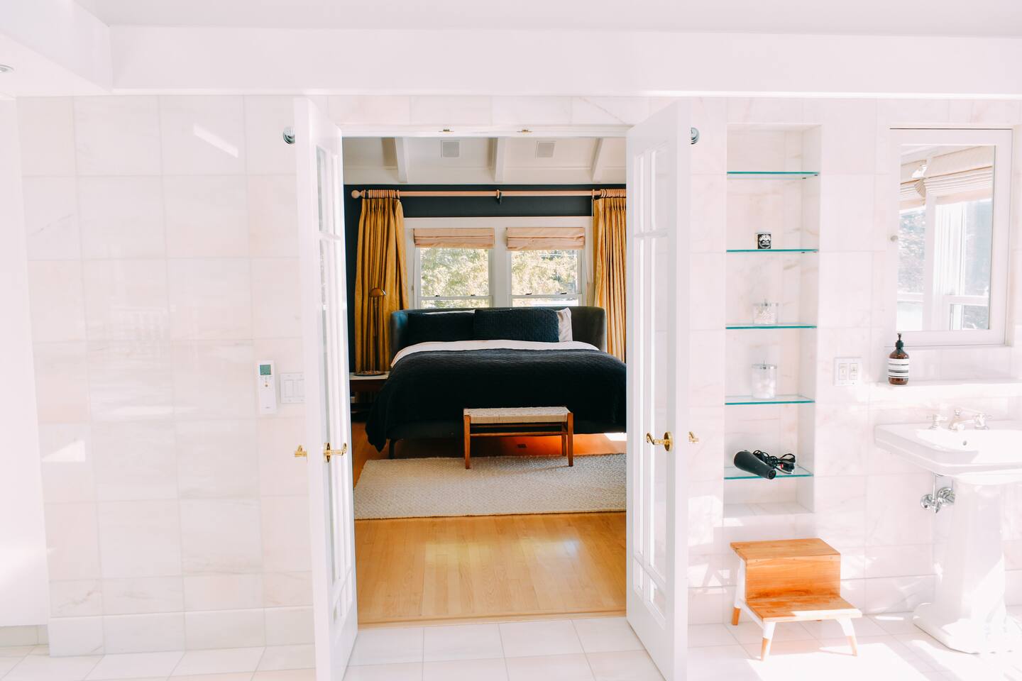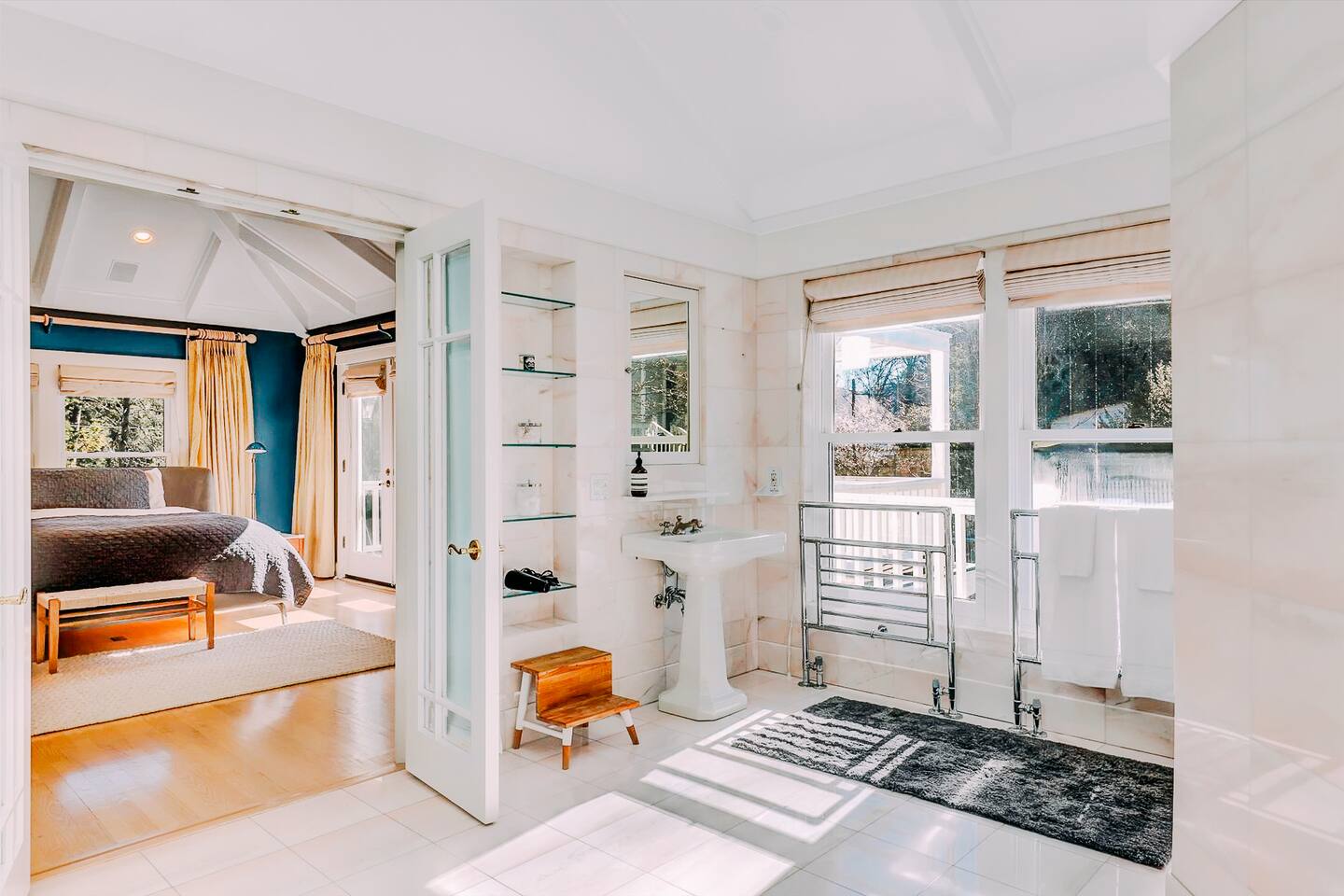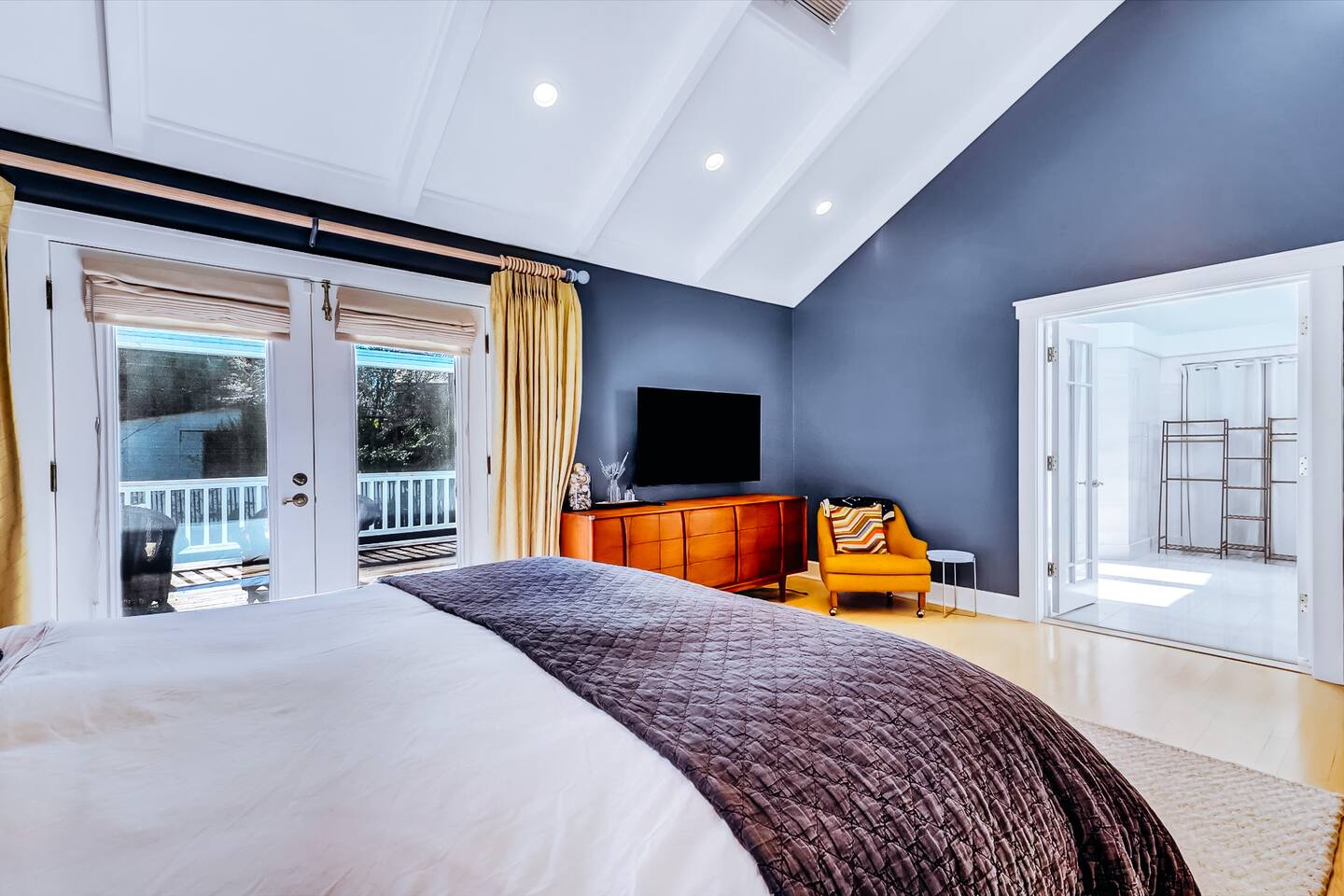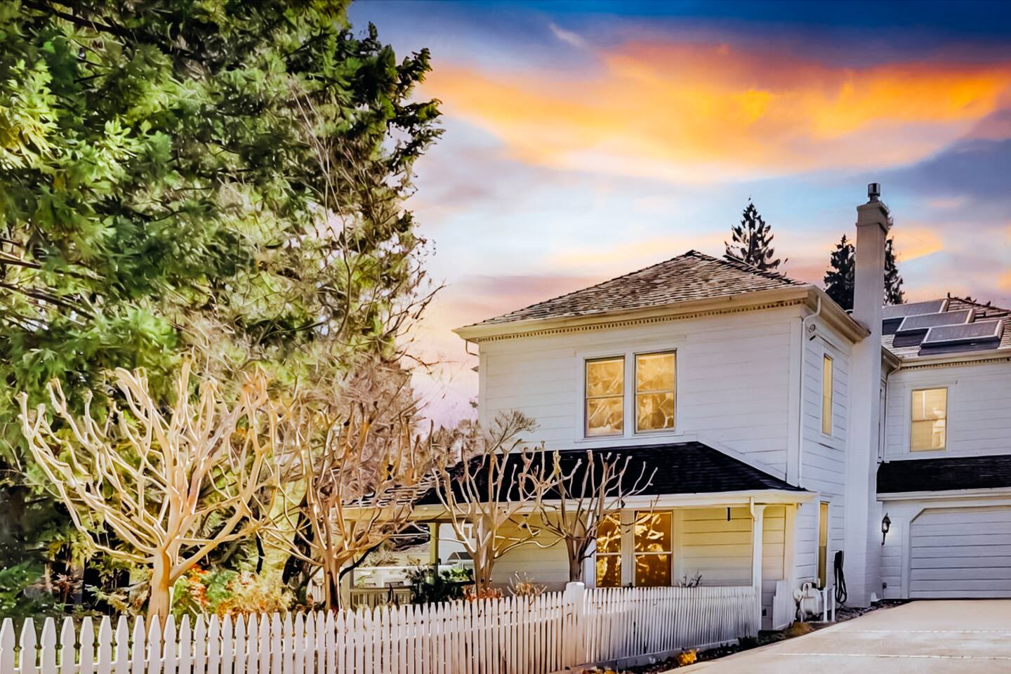 Discover your spacious 2,600 sq ft Victorian retreat, lovingly remodeled and nestled in the heart of Nevada City off Broad street! Built in the 1800s, this home offers historic charm with modern comfort, creating a memorable getaway. Wake up with a cup of coffee on the wraparound porch. Spend your afternoons lounging by the pool or strolling downtown — just a 5-minute walk away. Ideal for families or retreats, spacious and accommodating for all. This Victorian home offers a unique blend of comfort, luxury, and convenience, making it the perfect base for your Nevada City adventure. Pet-friendly, with conditions: Well-behaved dogs are welcome. Please inquire about your furry friends before booking. Amenities: •Pool/Hot tub •Black out shades in all bedrooms. •Electric Fireplace •Peloton Bike/Workout equipment •BBQ •Outdoor kids play equipment •Smart TVs •Private Upstairs Patio •Spacious, private yard •Kids room/toys/pack and play, optional baby gate and basic children's utensils •Walkable to historic downtown shops & restaurants •Spacious front parking area with room for multiple cars, plus free street parking •Laundry room with washer and dryer, accessible through the back entry to garage. •High-speed internet. •Mini-split heating and air conditioning throughout the home, with individual room controls. •Tesla Charger •Solar and Backup Batteries Bedrooms: Master Suite: Indulge in the vaulted beam master bedroom, a true sanctuary featuring a private outdoor patio, a large-screen smart TV, and an opulent en-suite bathroom. The bathroom boasts floor-to-wall marble tiles, full-length mirrors, a large standing shower, and heated towel racks. For your wellness, enjoy a Peloton bike, a rebounding trampoline, Pilates mat/blocks, and a mini-fridge for chilled water. Guest Bedrooms: Two additional bedrooms offer comfortable accommodations. One bedroom features two queen beds and a smart TV. The other serves as a versatile office/bedroom with a sleeper day bed stacked double mattress sleeps twin. Or, remove the top to side-by-side on the floor for an oversized queen and linens stored in the cabinets. All bedrooms are equipped with blackout shades for a restful night’s sleep. Bathrooms: The home features 2.5 bathrooms, with the master en-suite being a luxurious highlight. Living Spaces: Downstairs Entertainment: The downstairs area is designed for entertaining, featuring a deluxe full kitchen with a large range, double oven, and ample cooking supplies. The spacious dining area flows seamlessly into a sunroom filled with toys for children. The living room is a cozy haven with an oversized modular leather sofa, a beanbag, a large smart TV, a fireplace, and a selection of books and reading materials. Kitchen: The gourmet kitchen is fully equipped with everything you need to prepare delicious meals, featuring modern appliances and plenty of counter space. Outdoor Spaces: A sprawling outdoor oasis awaits you—a rare find in downtown Nevada City. Relax by the private pool and hot tub, where a safety gate ensures child protection. Enjoy alfresco dining under the pergola, with a BBQ grill and spacious dining table. Two fenced yards provide safe play areas for dogs and children, while the front yard boasts robust play equipment. Majestic, mature redwoods create a serene, secluded atmosphere.