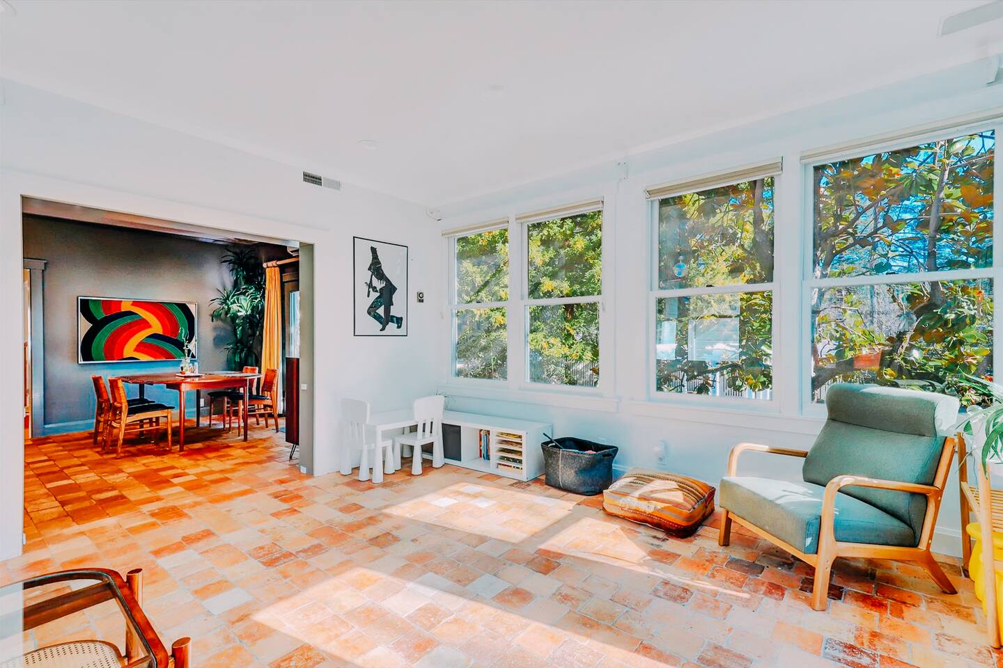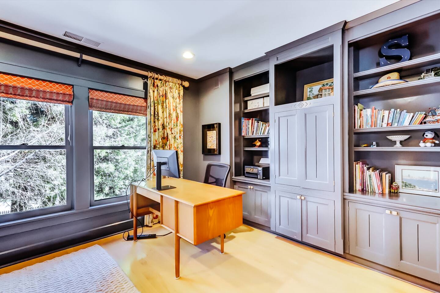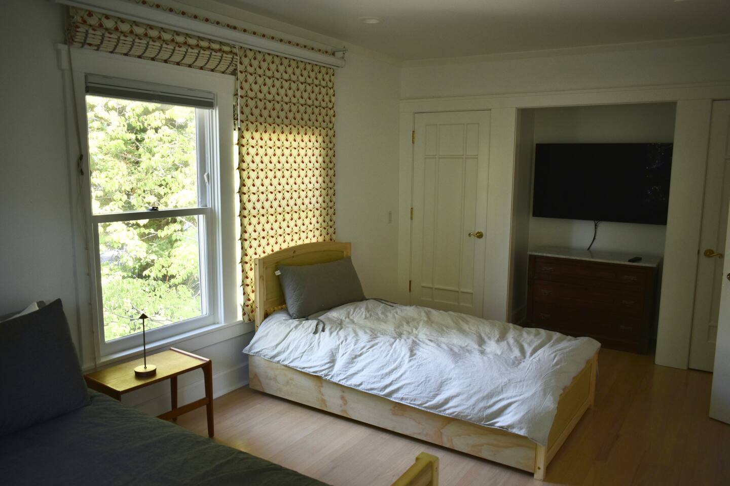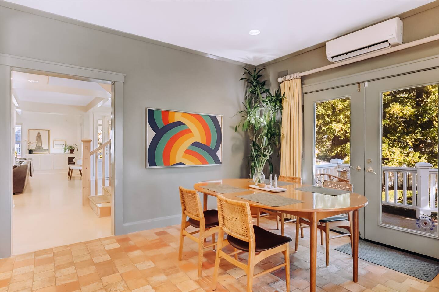 Discover your spacious 2,600 sq ft Victorian retreat, lovingly remodeled and nestled in the heart of Nevada City off Broad street! Built in the 1800s, this home offers historic charm with modern comfort, creating a memorable getaway. Wake up with a cup of coffee on the wraparound porch. Spend your afternoons lounging by the pool or strolling downtown — just a 5-minute walk away. Ideal for families or retreats, spacious and accommodating for all. This Victorian home offers a unique blend of comfort, luxury, and convenience, making it the perfect base for your Nevada City adventure. Pet-friendly, with conditions: Well-behaved dogs are welcome. Please inquire about your furry friends before booking. Amenities: •Pool/Hot tub •Black out shades in all bedrooms. •Electric Fireplace •Peloton Bike/Workout equipment •BBQ •Outdoor kids play equipment •Smart TVs •Private Upstairs Patio •Spacious, private yard •Kids room/toys/pack and play, optional baby gate and basic children's utensils •Walkable to historic downtown shops & restaurants •Spacious front parking area with room for multiple cars, plus free street parking •Laundry room with washer and dryer, accessible through the back entry to garage. •High-speed internet. •Mini-split heating and air conditioning throughout the home, with individual room controls. •Tesla Charger •Solar and Backup Batteries Bedrooms: Master Suite: Indulge in the vaulted beam master bedroom, a true sanctuary featuring a private outdoor patio, a large-screen smart TV, and an opulent en-suite bathroom. The bathroom boasts floor-to-wall marble tiles, full-length mirrors, a large standing shower, and heated towel racks. For your wellness, enjoy a Peloton bike, a rebounding trampoline, Pilates mat/blocks, and a mini-fridge for chilled water. Guest Bedrooms: Two additional bedrooms offer comfortable accommodations. One bedroom features two queen beds and a smart TV. The other serves as a versatile office/bedroom with a sleeper day bed stacked double mattress sleeps twin. Or, remove the top to side-by-side on the floor for an oversized queen and linens stored in the cabinets. All bedrooms are equipped with blackout shades for a restful night’s sleep. Bathrooms: The home features 2.5 bathrooms, with the master en-suite being a luxurious highlight. Living Spaces: Downstairs Entertainment: The downstairs area is designed for entertaining, featuring a deluxe full kitchen with a large range, double oven, and ample cooking supplies. The spacious dining area flows seamlessly into a sunroom filled with toys for children. The living room is a cozy haven with an oversized modular leather sofa, a beanbag, a large smart TV, a fireplace, and a selection of books and reading materials. Kitchen: The gourmet kitchen is fully equipped with everything you need to prepare delicious meals, featuring modern appliances and plenty of counter space. Outdoor Spaces: A sprawling outdoor oasis awaits you—a rare find in downtown Nevada City. Relax by the private pool and hot tub, where a safety gate ensures child protection. Enjoy alfresco dining under the pergola, with a BBQ grill and spacious dining table. Two fenced yards provide safe play areas for dogs and children, while the front yard boasts robust play equipment. Majestic, mature redwoods create a serene, secluded atmosphere.