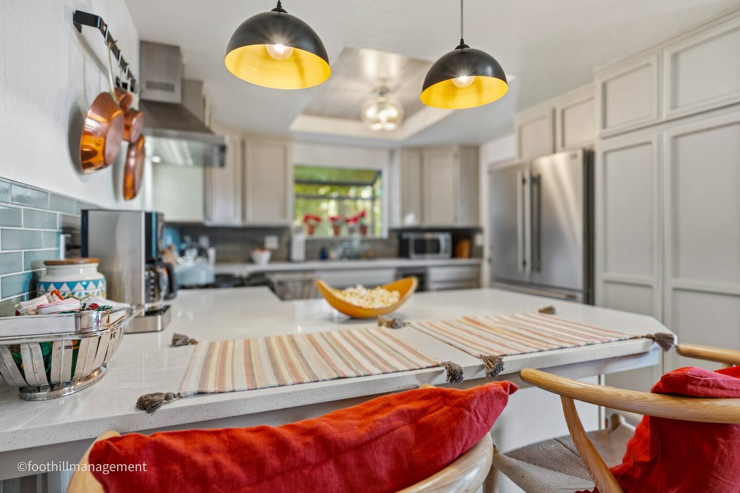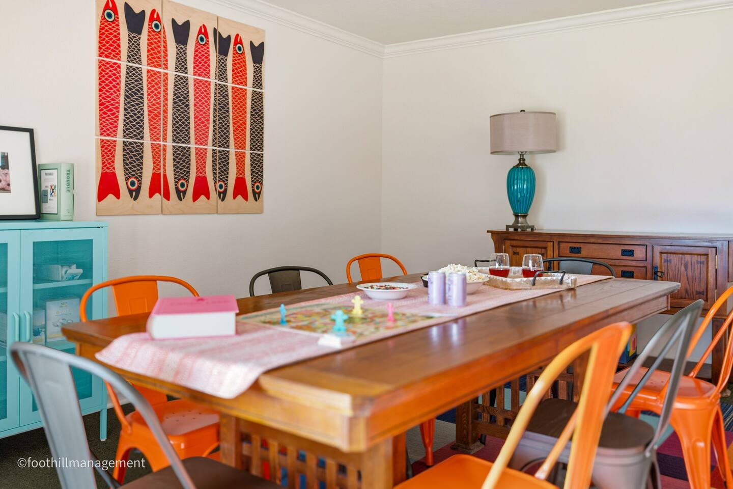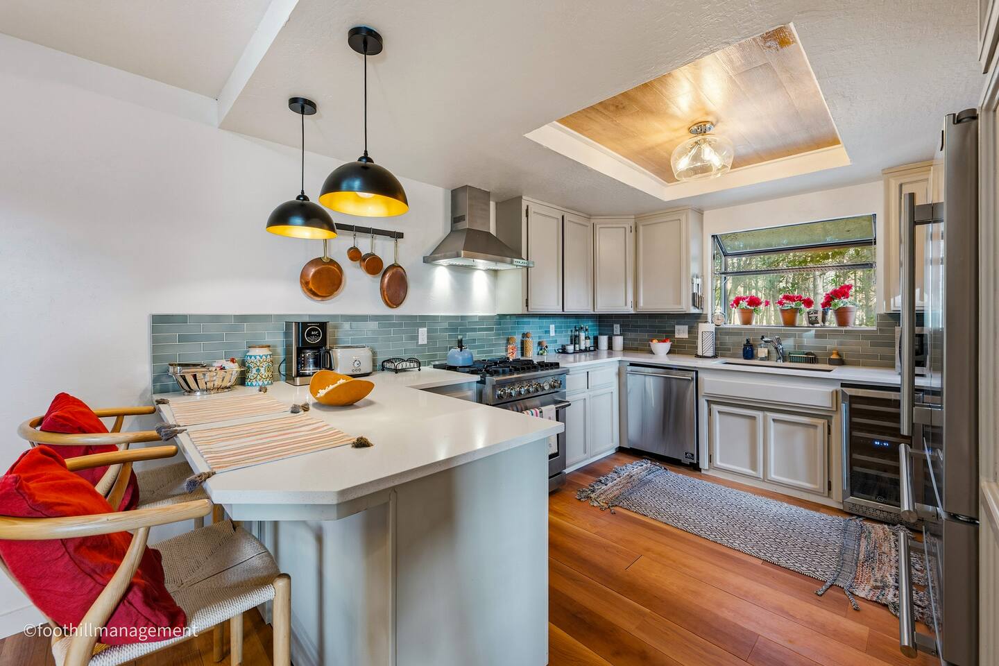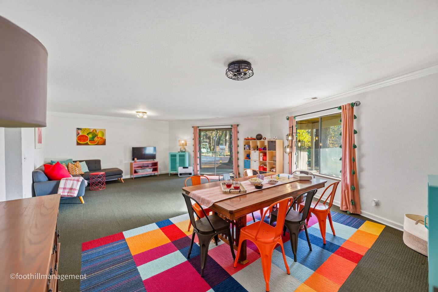 Stylish and serene, this vaulted-ceiling retreat offers a fully stocked home with a romantic wood-burning fireplace, a large cozy couch, an oversized dining area with extra seating, and a beautifully updated kitchen perfect for hosting family gatherings. The home includes two full bathrooms (one ensuite in the master), three comfortable bedrooms, plus a fun bunk room with three trundle beds in the bonus/game room. Step outside to enjoy two deluxe BBQs, an expansive patio with a horseshoe pit and basketball hoop, and a large 6–8 person hot tub. Inside, you’ll find two large Smart TVs, fast streaming Wi-Fi, and plenty of games to keep the kids entertained. With lots of room to stretch out yet still spend meaningful time together, this home strikes the perfect balance of cozy and spacious. Surrounded by mature pines and just a quick drive to Grass Valley and Nevada City, you’ll be close to the action but private enough to truly relax.