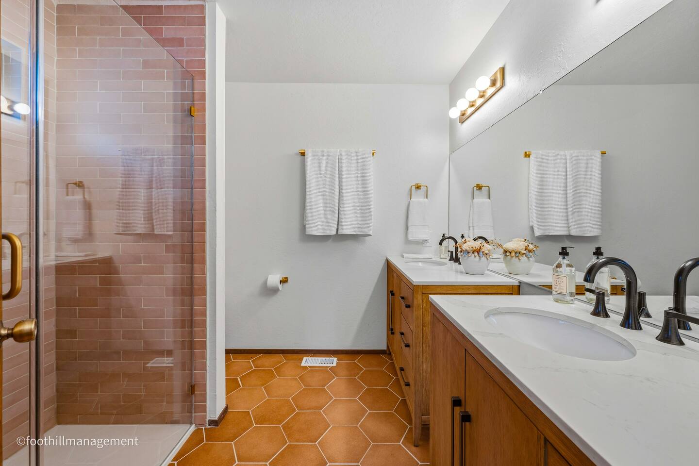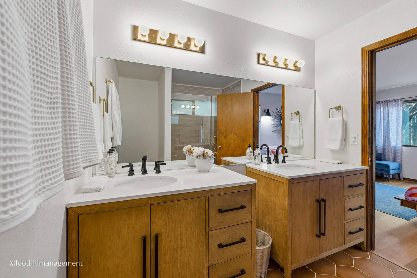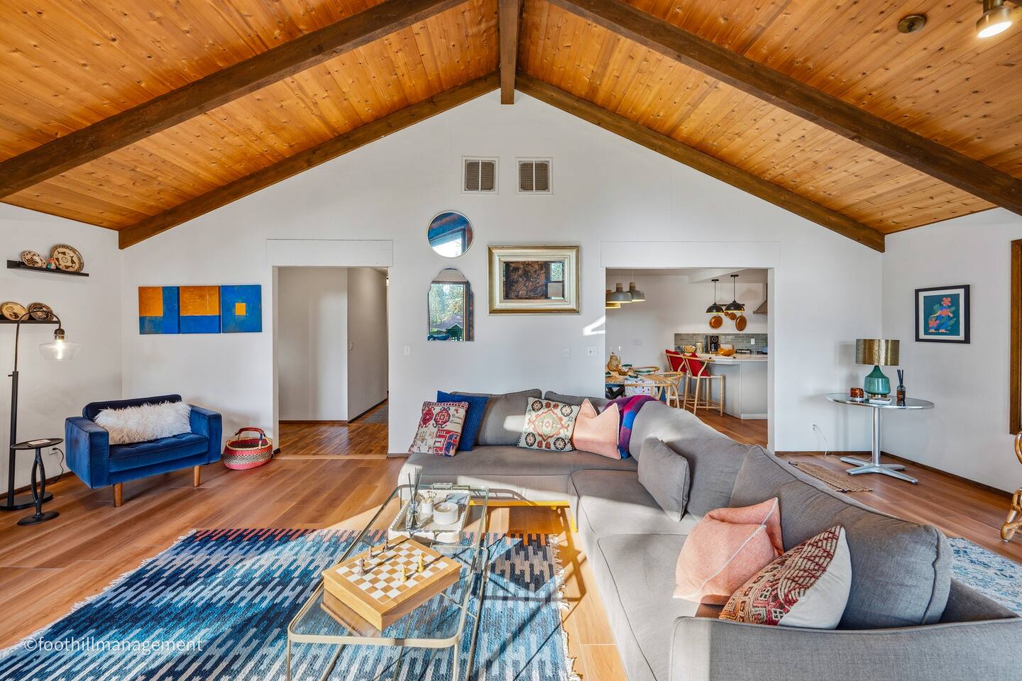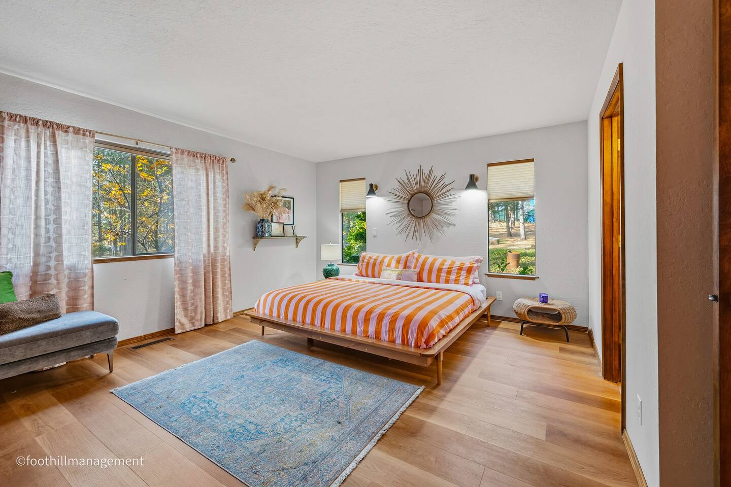 Stylish and serene, this vaulted-ceiling retreat offers a fully stocked home with a romantic wood-burning fireplace, a large cozy couch, an oversized dining area with extra seating, and a beautifully updated kitchen perfect for hosting family gatherings. The home includes two full bathrooms (one ensuite in the master), three comfortable bedrooms, plus a fun bunk room with three trundle beds in the bonus/game room. Step outside to enjoy two deluxe BBQs, an expansive patio with a horseshoe pit and basketball hoop, and a large 6–8 person hot tub. Inside, you’ll find two large Smart TVs, fast streaming Wi-Fi, and plenty of games to keep the kids entertained. With lots of room to stretch out yet still spend meaningful time together, this home strikes the perfect balance of cozy and spacious. Surrounded by mature pines and just a quick drive to Grass Valley and Nevada City, you’ll be close to the action but private enough to truly relax.