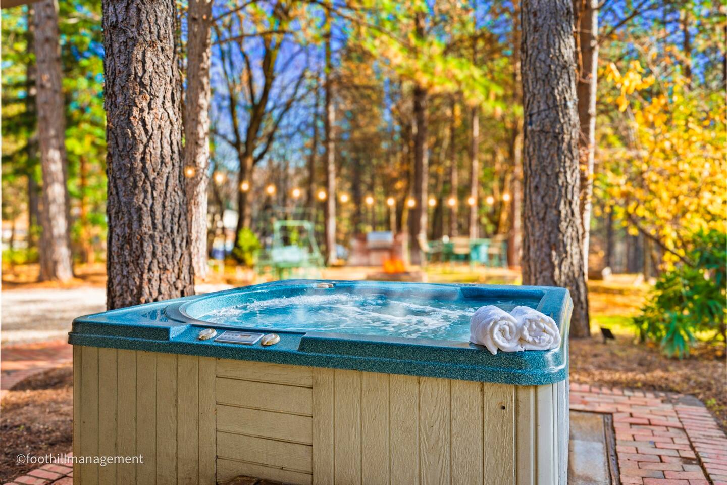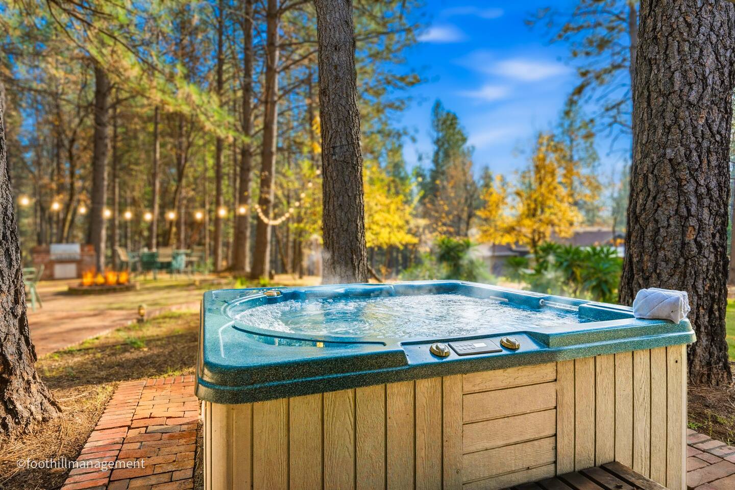 Welcome to Durden Ranch Serene and modern cabin with vaulted-ceilings, wood-burning fireplace, updated kitchen, and spacious dining area. Enjoy 3 bedrooms, a bunk room, 2 baths (one ensuite), fast Wi-Fi, Smart TVs, and family games. Outside features include 2 BBQs, a large hot tub, horseshoe pit, basketball, and an expansive patio. Close to Grass Valley and Nevada City, yet private enough to unwind.