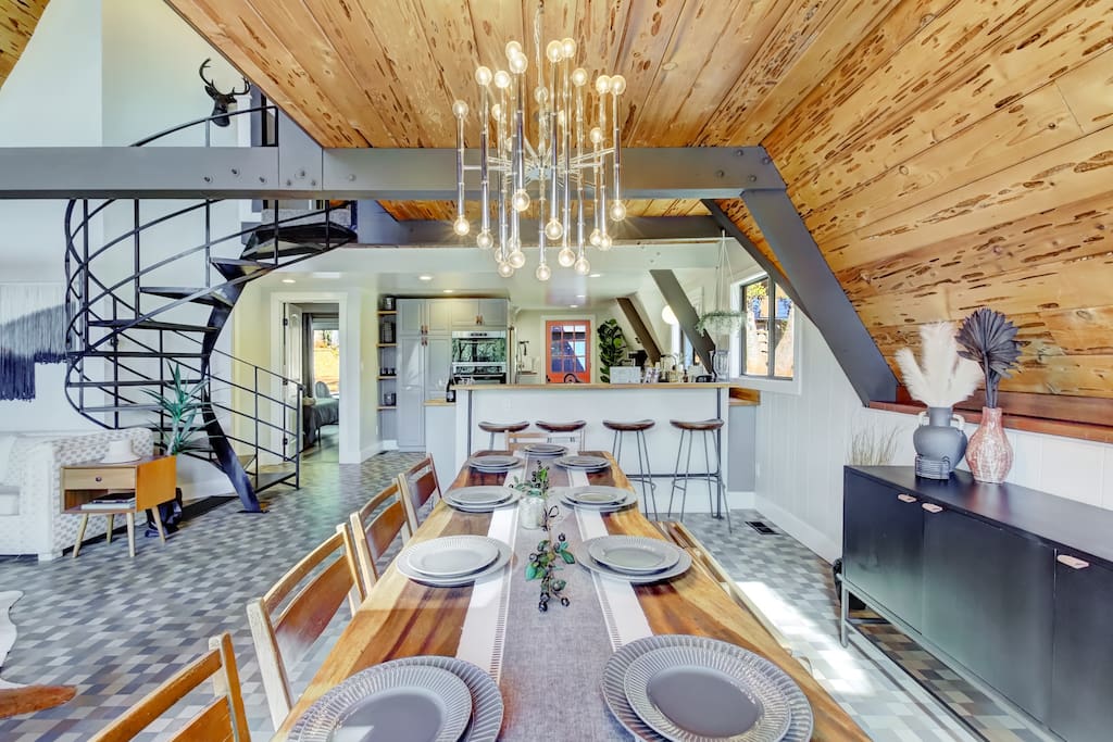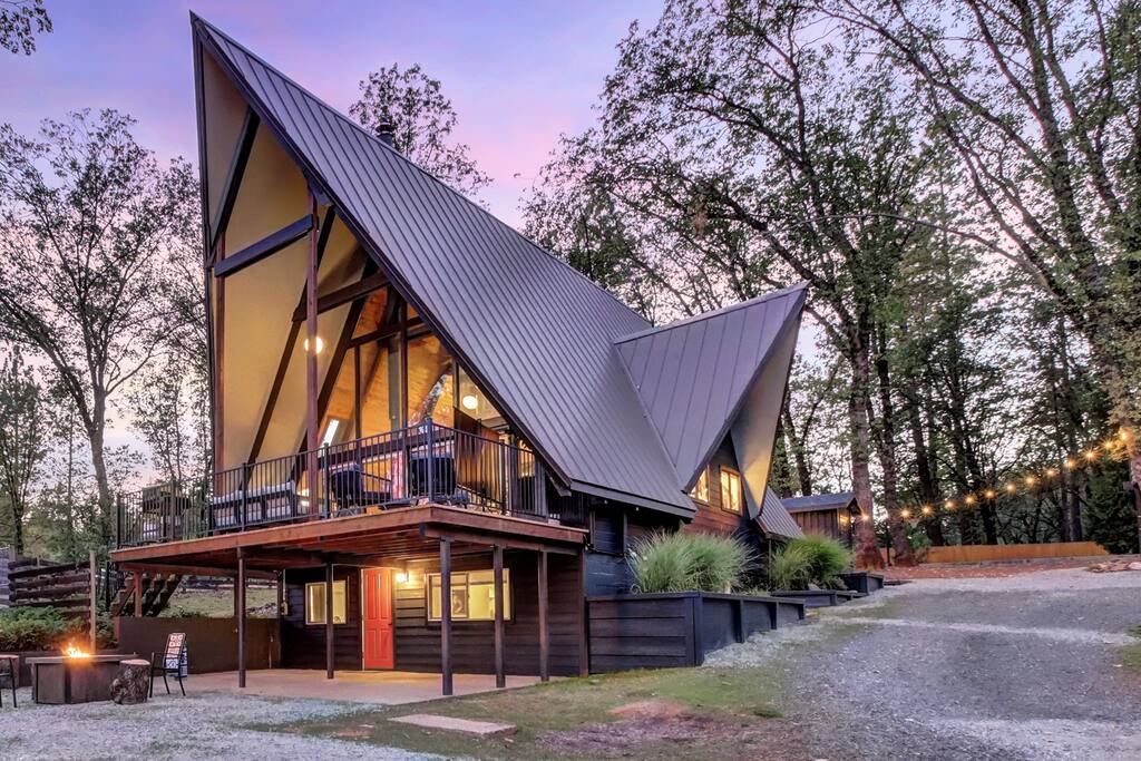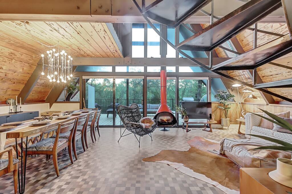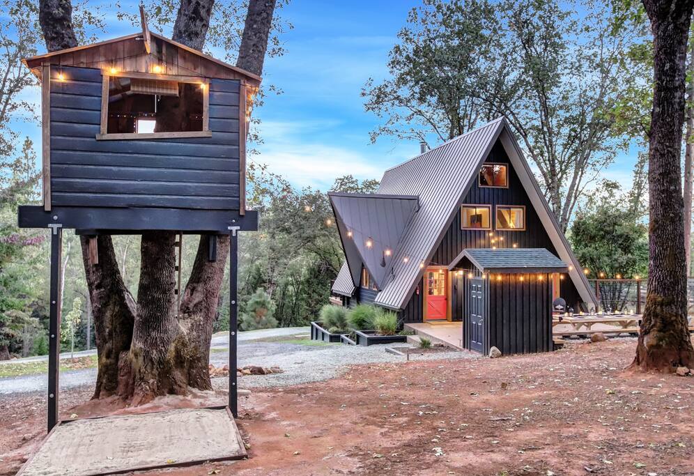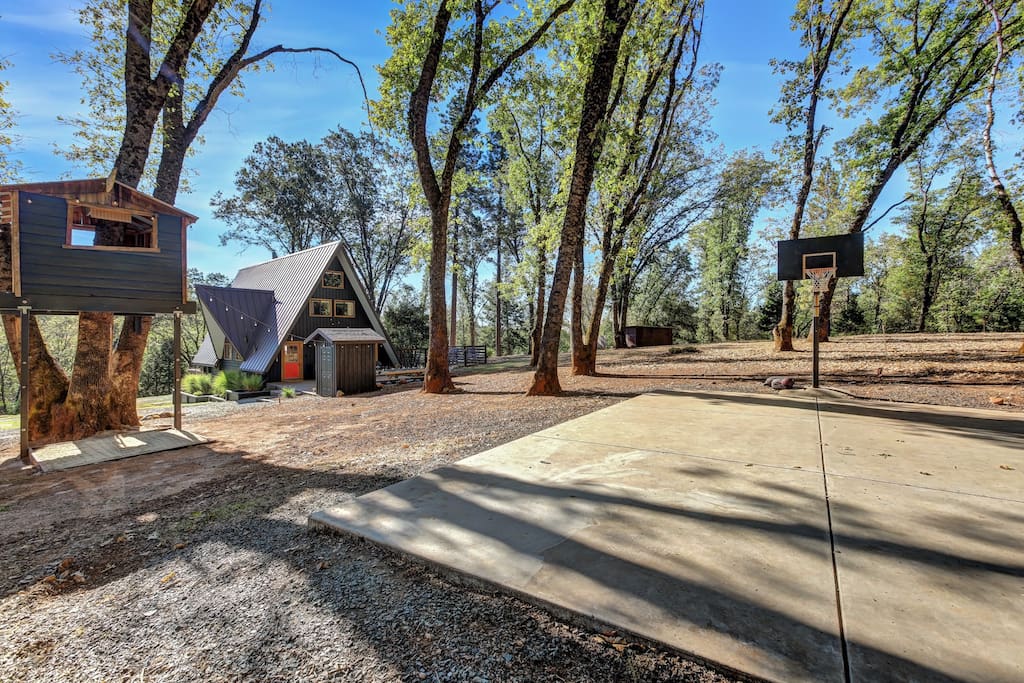 We invite you to visit the Triangle Ranch, 2023's 7th most wish-listed home in the world. Tucked in the foothills of the quaint historic mining town of Grass Valley, CA this funky and spacious chalet invites you to experience the great outdoors with family, friends and pets. Enjoy the hot tub, basketball court, treehouse, kid rooms, bbq, fire-pit, pickle-ball, horseshoe, disc-golf, home theater, and more. One hour from Tahoe and 10 minutes to town, you’re never short of things to explore.